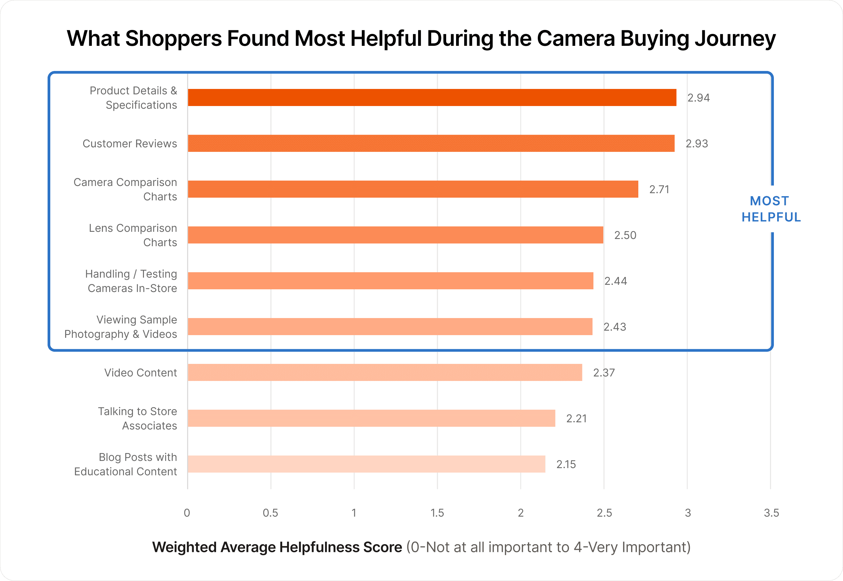 34% of buyers are photography novices. Yet the display fails to help them find the right gear.